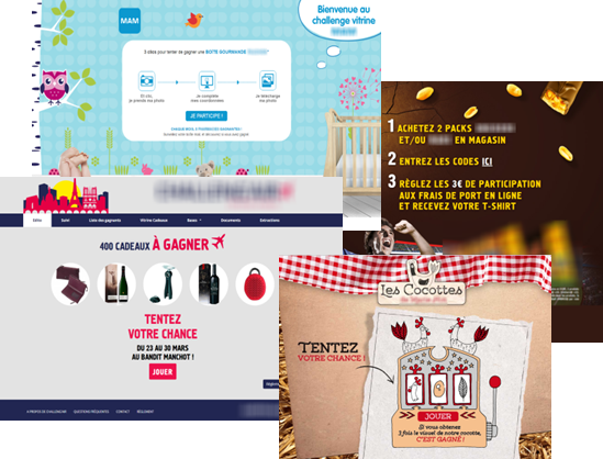 Concours photos, bandit manchot, quiz, enquête de satisfaction, module de remontés de preuve d’achat, roue de la fortune, jeux événementiels…
